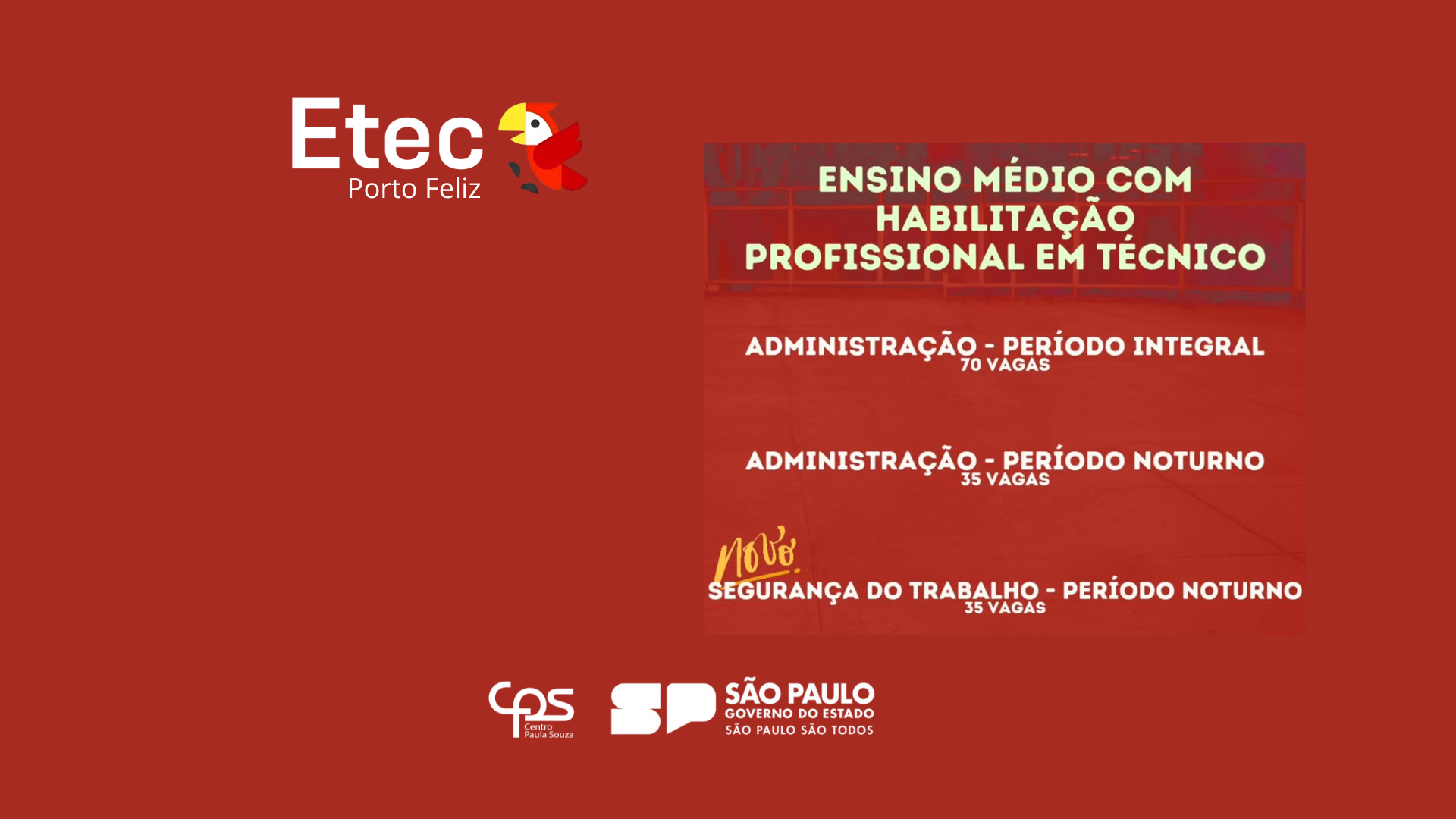 Venha estudar na Etec de Porto Feliz em 2026! No período de 10/09 até às 15h do dia 03/11/2025 estão abertas as inscrições para o Vestibulinho da Etec! Se você quer um ensino médio e […]