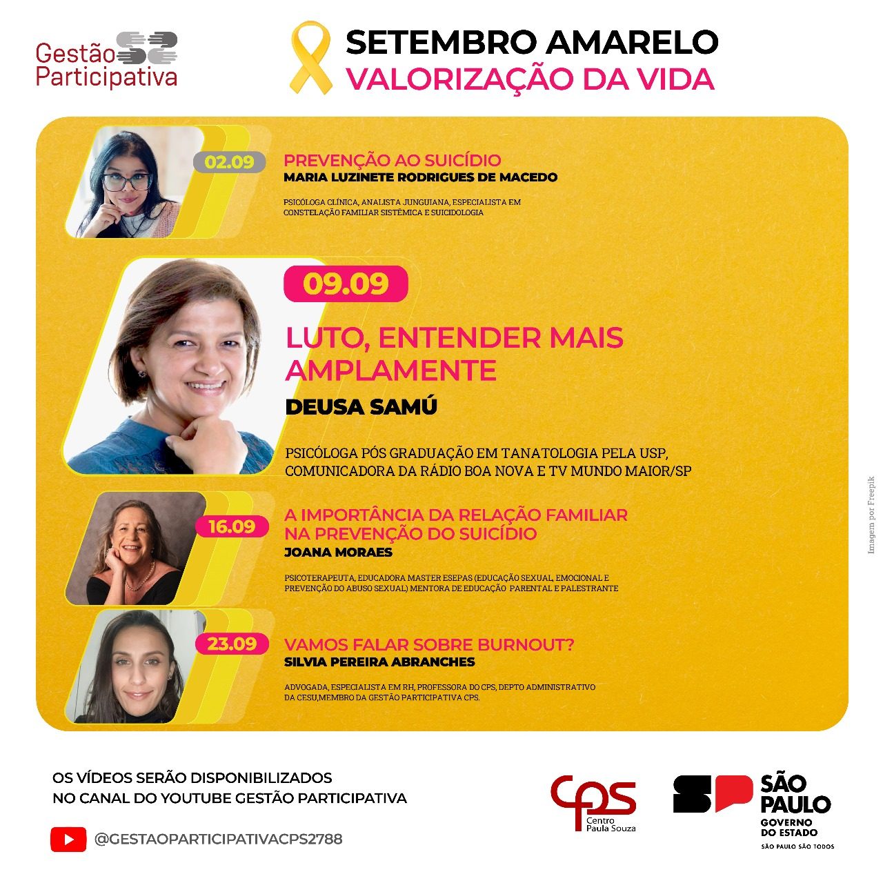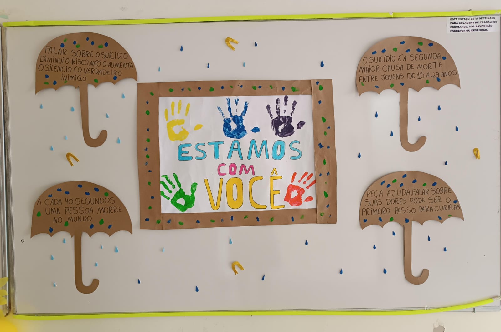 Durante todo o mês de setembro foram feitas ações para valorização da vida, promovidas pelo Centro Paula Souza e também por turmas da nossa unidade. Aconteceram palestras, web seminários e decorações especiais para ajudar na prevenção ao suicídio.