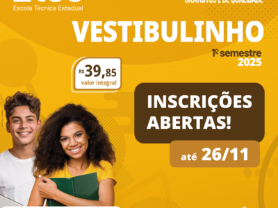Venha estudar na Etec de Porto Feliz em 2026! No período de 10/09 até às 15h do dia 03/11/2025 estão abertas as inscrições para o Vestibulinho da Etec! Se você quer um ensino médio e […]