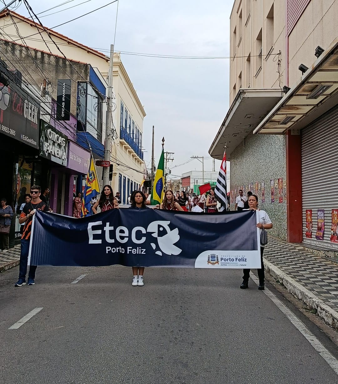 Alunos e funcionários participaram do Desfile Cívico em comemoração do aniversário da cidade de Porto Feliz/SP na data de 13 de outubro.